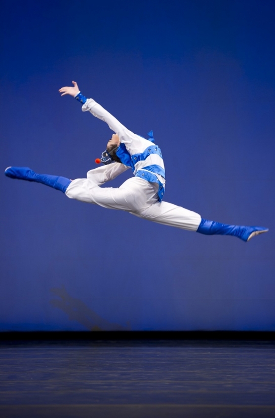 De-a lungul anilor, doamna Zhou-Galati şi-a petrecut nenumărate ore perfecţionând tehnica unor poziţii ca aceasta. Ea poartă cel puţin 10 perechi de pantofi de dans în timpul unui sezon de performanţă.
