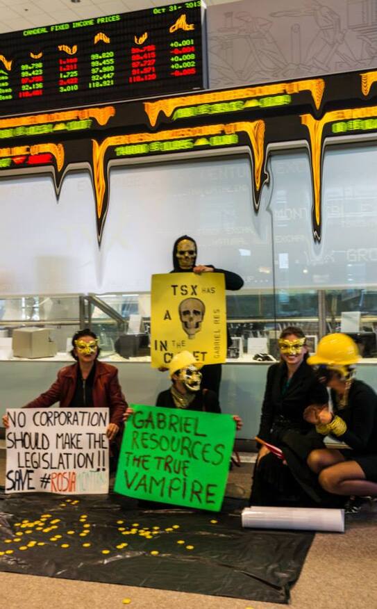 Pe data de 31 Octombrie, în Toronto s-a organizat un nou protest anti Gabriel Resources în faţa clădirii Toronto Stock Exchange - TSX, unde Corporaţia Gabriel Resources este listată public.