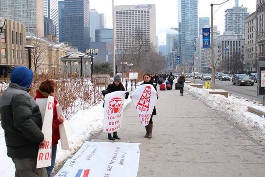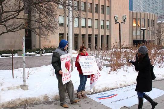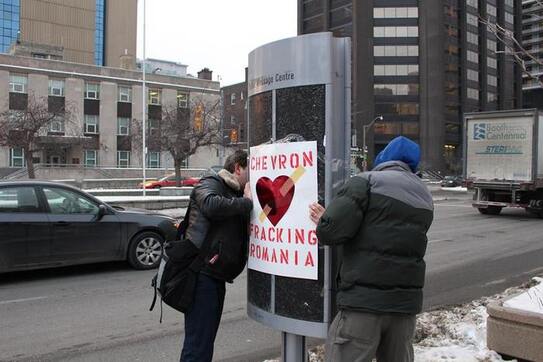 Protest împotriva Chevron şi a propagandei gazelor de şist la ambasada Statelor Unite din Toronto - organizat de Ziua Îndrăgostiţilor