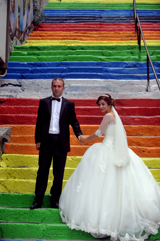 În Istanbul, protestul se vopseşte în culorile curcubeului. La sfârşitul lunii august, lunga şi abrupta scară Findikli, situată într-un cartier din Istanbul cu vedere la Bosfor, a fost pictată cu şapte culori. Autorul actului a fost Huseiyn Cetinel, de profesie pensionar, care a cheltuit 800 de dolari şi patru zile de muncă pentru a schimba faţa acelei părţi a cartierului.