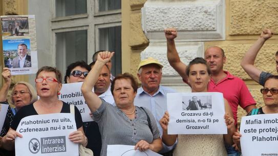Opoziţia extraparlamentară şi activişti civici au protestat marţi, 24 iulie, în faţa Primăriei Chişinăului, faţă de „mafia imobiliară”, cerând naţionalizarea terenului cafenelei Guguţa din apropierea Parlamentului, unde urmează a fi construit un centru de afaceri de către firme afiliate liderului Partidului Democrat, Vlad Plahotniuc.