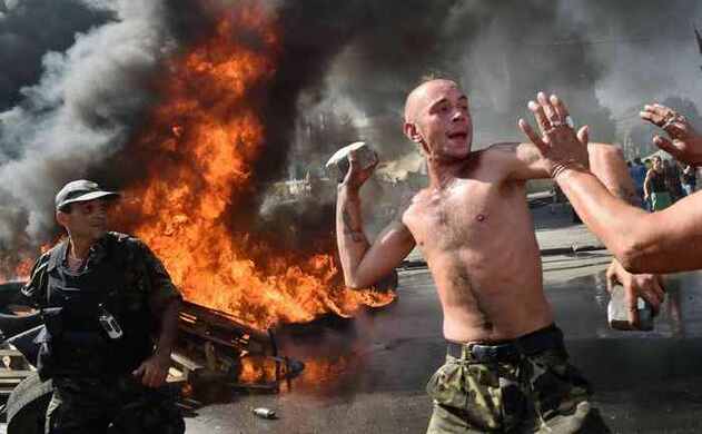 După tentativa de eliberare a spaţiului iniţiată pe 7 august, protestatarii au început să arunce bucăţi de piatră spre diviziile de voluntari şi muncitori şi să incendieze cauciucuri, folosind aceleaşi tactici ca în timpul revoluţiei. Ieşirea staţiei de metrou Maidan Nezalezhnosti a fost închisă forţat din cauza focului şi a ciocnirilor, a precizat un purtător de cuvânt al companiei.