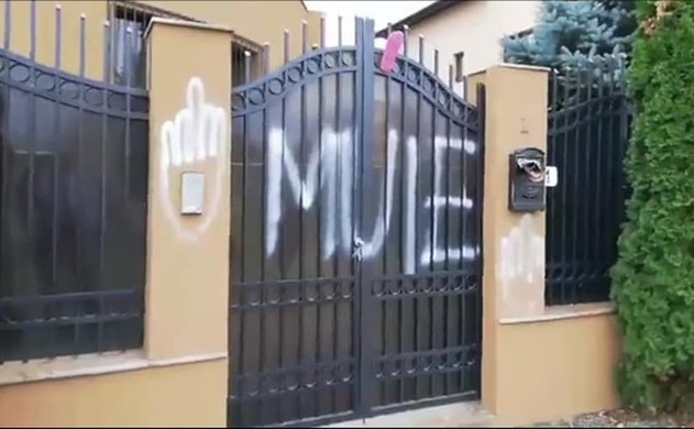 Mai mult, pe poarta de la intrare au scris "M**E" şi i-au umplut gardul cu semne obscene. De asemenea, pe uşa garajului au scris "Demisia".