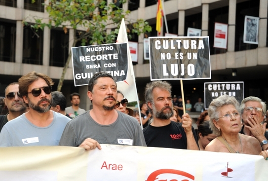 Demonstranţii au ieşit în stradă în oraşele şi comunele din Spania, adunându-se pe arterele din Madrid şi Barcelona, fluturând steaguri şi purtând bannere cu o foarfecă, pentru a simboliza reducerile de cheltuieli.