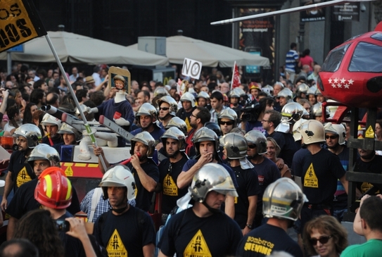 La Madrid, mulţimi de pompieri, purtând căşti de protecţie şi tricouri cu sloganul "Pompierii în pericol de dispariţie", au claxonat şi au aprins pocnitori. Anterior, poliţiştii şi membrii Gărzii Civile s-au alăturat protestelor.