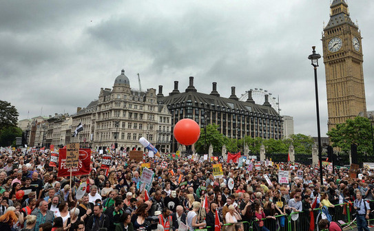 Manifestaţia marchează “debutul unei campanii de protest, greve, acţiuni directe şi de nesupunere civică în întreaga ţară. Nu vom avea tihnă până când cura de austeritate aplicată ţării va fi de domeniul trecutului”, a declarat Sam Fairbairn, un responsabil al asociaţiei People's Assembly Against Austerity, din care fac parte sindicate, protestatari antirăzboi, dar şi politicieni laburişti şi ecologişti, anunţă Agerpres.