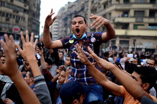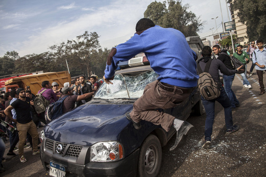 Deja de sâmbătă forţele de securitate egiptene au tras salve de gaze lacrimogene în centrul oraşului Cairo împotriva demonstranţilor care protestau împotriva a 24 de arestări efectuate în conformitate cu noua lege care reprimă demonstraţiile. Posturile de televiziune private din ţară au difuzat imagini ale confruntărilor învăluite într-un nor dens de gaz, dintre poliţie, în echipament de revoltă, cu scuturi şi căşti, şi protestatarii care răspund aruncând cu pietre în ei. Traficul în centrul capitalei a fost întrerupt, magazinele închise iar rezidenţii au fugit din zona Abdeen, scena conflictelor. Printre persoanele care au ieşit în stradă pentru a protesta împotriva arestărilor s-a aflat, de asemenea, Ahmed Maher, lider al Mişcării Tineretului 6 aprilie, care a jucat un rol important în revoltele din 2011 împotriva preşedinţiei lui Hosni Mubarak.