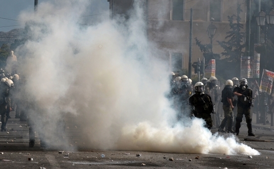Protestele anti-austeritate au devenit violente joi la Atena, sute de tineri aruncând bombe cu benzină şi pietre în poliţişti, potrivit unui raport Reuters.