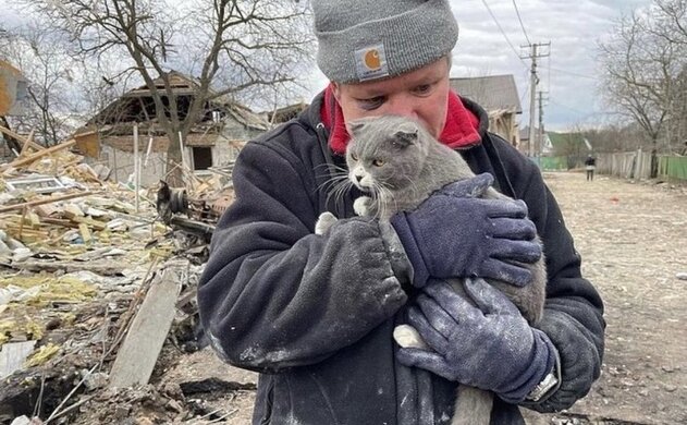 Ministerul de Externe al Ucrainei prezintă cazul dramatic al unui ucrainean care a plecat din Kiev pentru a se salva pe el şi familia sa. O rachetă rusească a lovit însă casa din localitatea unde a fugit. Dintr-o familie de 12 persoane a rămas doar el. Şi o pisică...