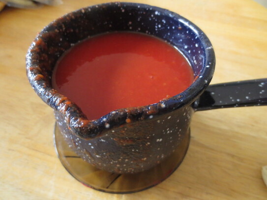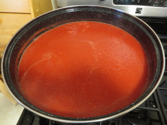 Sucul de roşii obţinut prin pasirare se pune într-o cratiţă largă şi se fierbe la foc mic până când dispare spuma de deasupra, ce se formează în timpul fierberii, iar sucul scade cam de două degete. La sfârşit, se poate adăuga puţină sare, după gust (opţional).