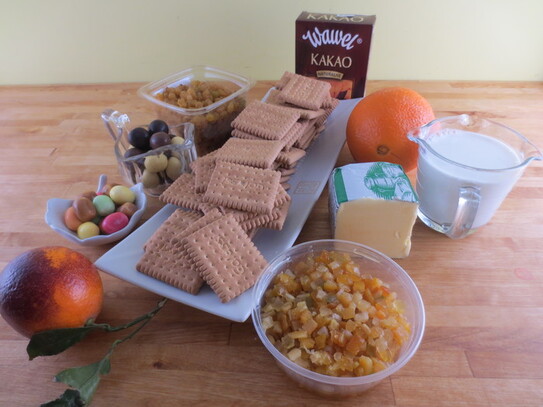 o lingură de cacao, câteva bombonele şi coajă de portocale pentru decorat