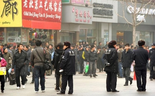 Pe 20 februarie, un numar mare de politisti in uniforme, politisti imbracati in civili si membrii ai canalelor media de stat au aparut pe binecunoscuta alee Wangfujing din Beijing, una din locatiile de protest postate anterior pe internet. Politia a arestat multi oameni. Un numar mare de dizidenti au fost de asemenea arestati mai devreme.