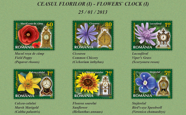 În continuarea seriei emisiunilor de mărci poştale care abordează într-o manieră originală tematica floră, foarte apreciată de colecţionari - de data aceasta asociată cu ceasuri de colecţie, Romfilatelia lansează în circulaţie vineri emisiunea filatelică „Ceasul florilor” – partea I.