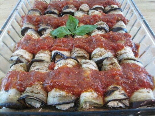 Acum când pieţele abundă în legume proaspete, iar vinetele şi roşiile sunt în plin sezon, merită să încercaţi aceste rulouri făcute din felii de vinete coapte pe grătar, umplute cu brânză şi servite în sos de roşii. Aceste rulouri delicioase se pot folosi ca aperitiv, la cină, sau garnitură.