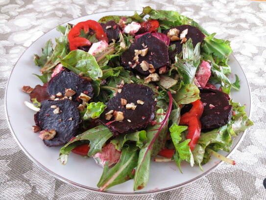 Salata cu sfeclă roşie, brânză şi nuci - nutritivă şi gustoasă