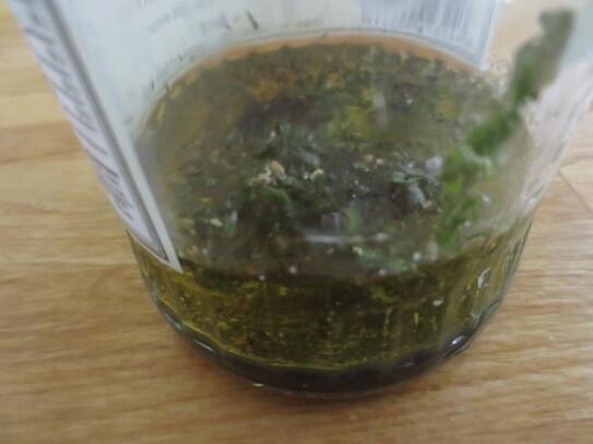 Pentru prepararea vinegretei se foloseşte un borcan cu capac ce se poate închide ermetic. În borcan se toarnă uleiul de măsline, zeama de la o jumătate de lămâie, 2-3 linguri de oţet balsamic sau după preferinţă, apoi se adaugă usturoiul sub formă de pastă, tarhonul şi cimbrul mărunţit fin, sare şi piper. Se închide borcanul apoi se agită bine de tot până când toate ingredientele sunt combinate.