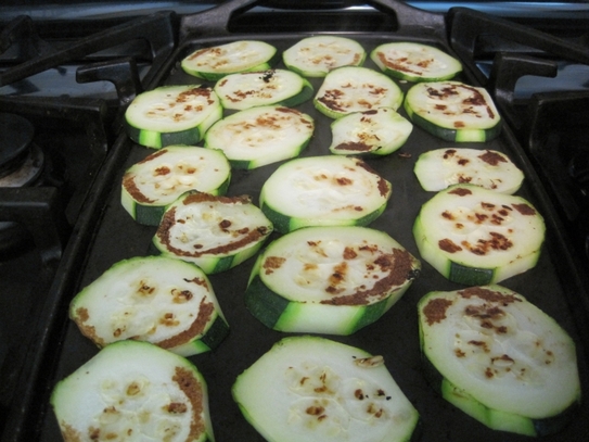 Dovleceii se spală, se curăţă de cotor şi de coaja care este mai tare, după care se taie în rondele de un cm grosime. Dovleceii tăiaţi în rondele se pun pe o plită încinsă, sau la grătar să se prăjească. După 2-3 minute se întorc pe cealaltă parte şi se continuă prăjirea. Când sunt gata se pun într-un castron.