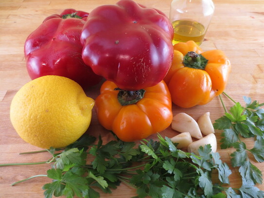 Salată de gogoşari copţi cu sos de usturoi şi lămâie