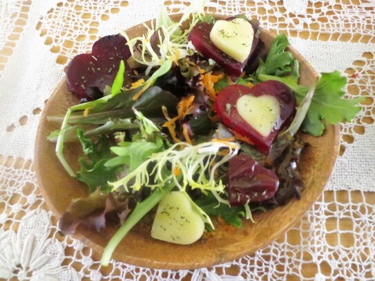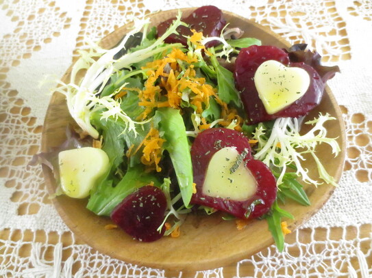 Adăugate la salata preferată, aceste inimioare, ce combină într-un mod plăcut culoarea vibrantă, roşie a sfeclei coapte cu cea alb-gălbuie a caşcavalului, vor da o notă romantică şi elegantă, exprimând într-un mod original, o parte din emoţiile pe care aţi dori să le transmiteţi celor dragi.