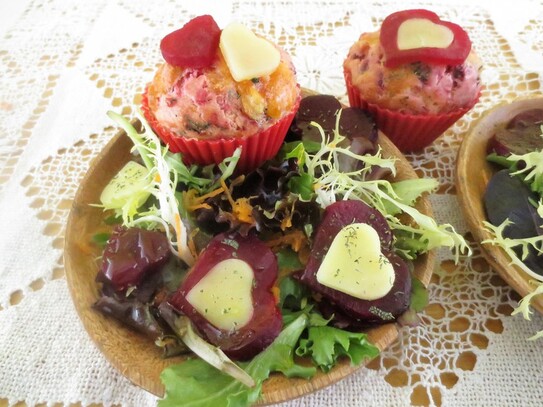 Dacă va număraţi printre persoanele care din diferite motive doriţi să evitaţi dulcele în această zi specială, vă sugerăm câteva idei simple şi de efect. Nu aveţi nevoie, decât de câteva sfecle roşii coapte sau fierte, o bucăţică de caşcaval şi două forme de biscuiţi în formă de inimioară pentru decupat.