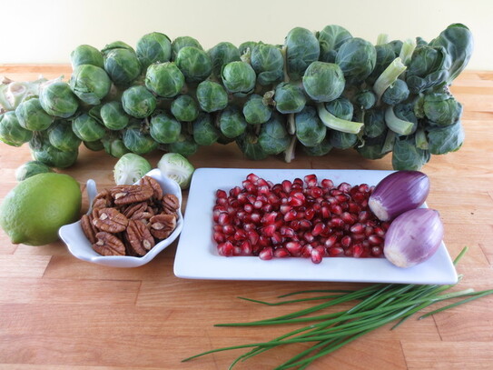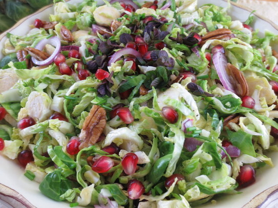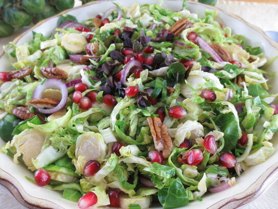 Salată de varză de Bruxelles cu rodie, păpădie şi nuci