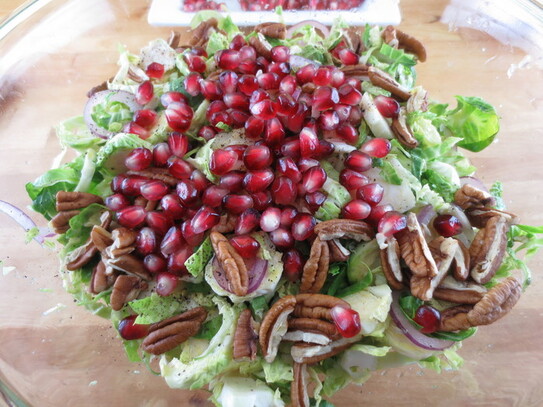 În castronul cu ceapă se adaugă varza, frunzele de păpădie tăiate, nucile şi seminţele de rodii. Se sărează şi piperează după gust, apoi se adaugă sucul de la cealaltă lămâie amestecat cu două linguri de ulei de bună calitate.