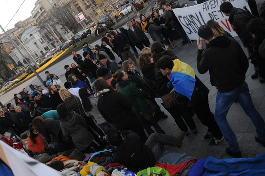 În jurul orei 16 voi părăsi treptele pe care m-aţi putut găsi în ultimele 3 săptămâni. Când am intrat în această formă de protest am spus că nu mă aştept la minuni din partea autorităţilor, nici nu au fost. Dar minunile s-au întâmplat totuşi acolo unde bănuiam că se vor petrece – în rândul trecătorilor şi al vostru, cei care mi-aţi fost alături. Vă mulţumesc tuturor celor care aţi fost aici, cu sufletul sau chiar lângă mine, fiecare după puteri. Poate gestul meu nu a mutat munţi (sau sonde), dar a adus oameni alături – cel puţin asta am văzut în jurul meu. Mă veţi ierta sper ca, în dorinţa de a aduce mai multă vizibilitate problemelor care se petrec la Pungeşti, am recurs la un gest care multora v-a stricat sărbătorile, zilele sau nopţile. Vă mulţumesc încă o dată pentru grijă şi sper să îmi înţelegeţi decizia. Ne revedem curând. La Pungeşti problemele continuă. Sandu”.