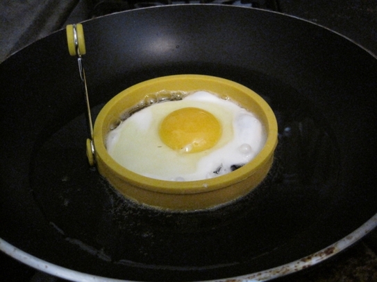 Puneţi o tigaie obişnuită la foc, adăugaţi uleiul şi lăsaţi să se încingă. Spargeţi ouăle în tigaie, apoi acoperiţi cratiţa cu un capac, pentru a ajuta ca oul să se gătească mai repede şi mai uniform. Într-un minut, ar trebui să fie gata. Dacă aveţi tigaie de teflon, puteţi găti ouăle şi fără adaos de ulei. La sfârşit, se presară peste ou puţină sare.