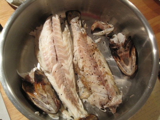 Este de preferat să prăjeşti peştele cu solzi cu tot pe un strat de sare grunjoasă. Dar, se poate prăji la fel de bine şi direct pe grătar, la foc potrivit între mediu şi mare; fiind luat la flacără, pielea face o crustă care reţine sucul în carne, pastrandu-i frăgezimea. Peştele se întoarce uşor de pe o parte pe alta, ca să se rumenească uniform. După ce se ia de pe grătar se curăţă frumos de solzii şi pielea arsă.