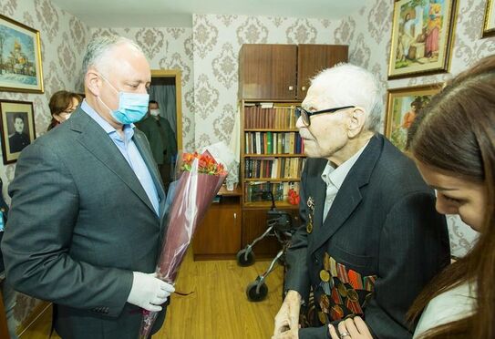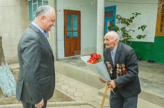 „În cadrul vizitei în raionul Cahul, am mers la doi veterani ai Marelui Război pentru Apărarea Patriei. Alexandru Cocoș, în vîrstă de 96 de ani, locuieşte în satul său natal, Giurgiuleşti. (...) Al doilea veteran este Ilia Axionov, în vîrstă de 98 de ani. A participat la luptele pentru eliberarea Moscovei din decembrie 1941, a luptat în componența Frontului de Vest, apoi în cel de-al Doilea Front Baltic”, a scris Dodon în postarea sa.