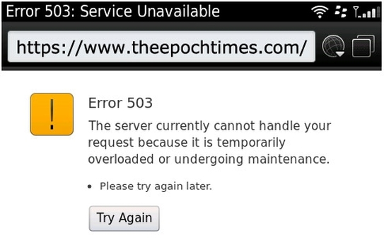The Epoch Times a fost vizat de o serie de atacuri cibernetice începând cu 29 martie, un atac denial of service sau DoS-refuz de serviciu-lipsit de succes vizând mai întâi epochtimes.com, înaintea unor continuări pe serverele conectate, în dimineaţa zilei de 1 aprilie. Site-ul în engleză, theepochtimes.com, a fost, de asemenea, vizat în a doua rundă de atacuri, suferind ceea ce părea a fi un atac denial of service.