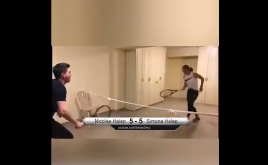 Simona Halep joacă tenis pe un teren improvizat acasă (Youtube smiley-omul)