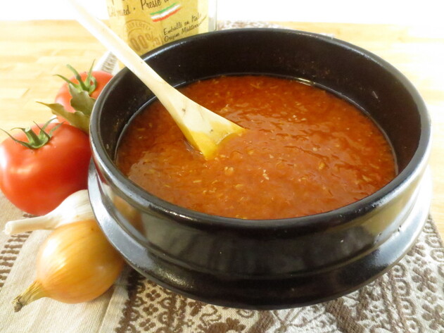 Sosul de tomate gătit în casă, bogat în carotenoide asociat cu reglarea lipidelor şi a biomarkerilor inflamatori este unul dintre cele mai clasice sosuri ale dietei mediteraneene. De asemenea, polifenoli prezenţi în ceapă şi usturoi, care sunt, de asemenea, o parte din această reţetă, au efecte benefice în combaterea bolilor cardiovasculare, hipertensiune, diabet zaharat şi a anumitor tipuri de cancer.