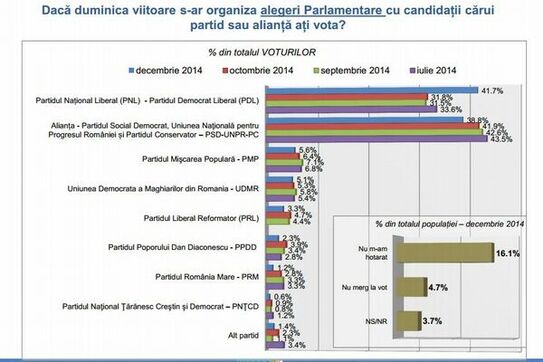 "PNL-PDL beneficiază de perioada de graţie specifică oricărei organizaţii politice care obţine direct sau indirect, printr-un candidat prezidenţial, un succes electoral semnificativ. Rămâne de văzut în urma cercetărilor din lunile următoare dacă avansul PNL-PDL este unul conjunctural sau unul consistent pe termen mai lung. Gestiunea problemelor interne sau de altă natură, managementul resurselor umane mai ales în cazul unor personalităţi ale celor două partide cu certe probleme de imagine şi reputaţie vor avea un impact asupra scorului electoral viitor al liberalilor. În ceea ce priveşte Alianţa PSD-UNPR-PC, deşi a suferit un eşec electoral, îşi păstrează un nivel ridicat de susţinere, în marja scorului pe care îl avea înainte de alegerile prezidenţiale, lucru care îi permite să joace în continuare un rol politic major în lunile care urmează", afirmă directorul Inscop.