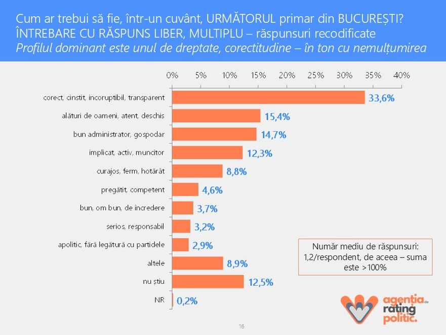 Va fi o cursă între un profil de protest şi un profil de primar clasic. De departe, cel mai puternic profil solicitat este: primar corect-cinstit-necorupt (33%) şi, abia apoi, pe locul doi, unul aproape de oameni sau gospodar. Nu există un candidat puternic şi unificator al mai multor segmente electorale (coaliţii de votanţi).