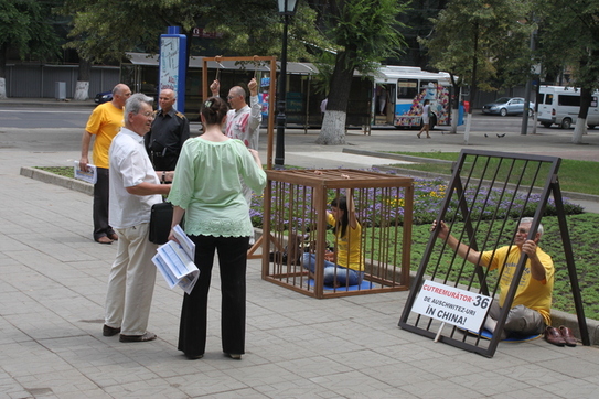 În semn de protest faţă de genocidul împotriva practicanţilor Falun Dafa în China, în Scuarul Europei (Grădina Publică "Ştefan cel Mare") şi în faţa Ambasadei Chinei la Chişinău, au fost puse în scenă unele dintre cele 100 metode de tortură, care sunt utilizate până în prezent în China împotriva practicanţilor Falun Gong.