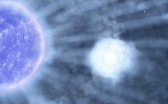 Cercetătorii cred că ea a fost lovită de un mănunchi de gaze de la steaua albastră gigant din apropiere, iar steaua neutronică a încercat să absoarbă această materie.
