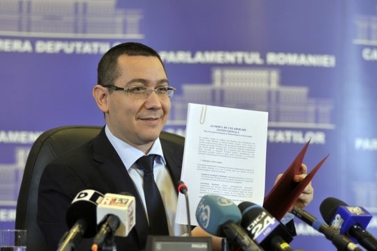 Premierul a confirmat că documentul a fost semnat în prezenţa liderului PNL, Crin Antonescu, şi a secretarului general al PSD, Liviu Dragnea.