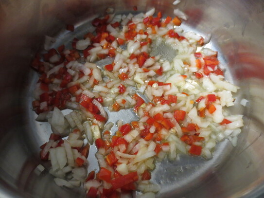 Ceapa şi ardeiul se călesc în oala de supă, în care s-au pus 2 linguri de ulei, timp de un minut. Se adaugă apoi morcovii şi pătrunjelul, o jumătate de linguriţă de sare şi paprică, se amestecă bine câteva minute, apoi se adaugă o cană de apă fierbinte, atât cât să acopere zarzavatul.