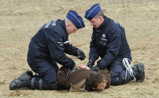 Numeroşi poliţişti au fost mobilizaţi pentru a-i împiedica pe manifestanţi să intre în sediul Alianţei. Mai multe zeci de persoane au fost arestate deja, relatează portalul belgian 7sur7.