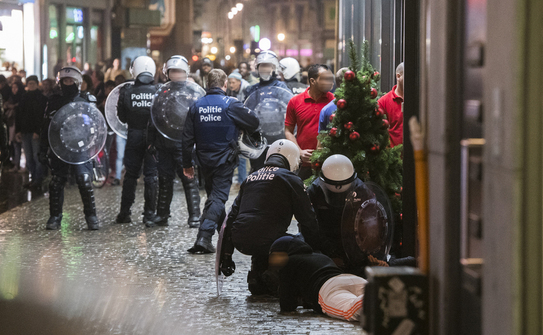 Poliţia locală a cerut ajutorul poliţiei federale după ce conflictele din capitala belgiană s-au amplificat rapid şi grupuri de tineri au atacat poliţiştii cu pietre şi cuţite.