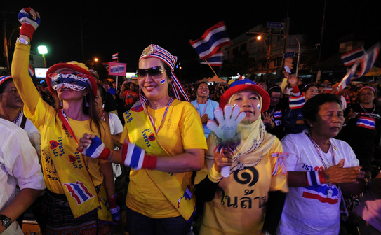 Clasa de mijloc şi elita regalistă îşi manifestă nemulţumirile faţă de Guvern şi de Thaksin Shinawatra, fratele miliardar al premierului, care a fost el însuşi prim-ministru, fiind demis printr-o lovitură de stat militară în 2006. Aceştia din urmă se bucură de susţinerea ţăranilor săraci din zonele rurale şi de favorurile Beijing-ului.