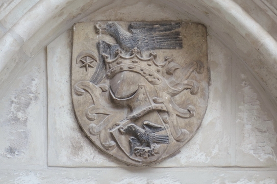 Însă regele Ladislau Postumul, apreciind imensele servicii pe care le adusese statului, îi dăruieşte lui Ioan Corvin, în 1453, oraşul şi districtul Bistriţei, cu douăzeci de sate, precum şi demnitatea de comite perpetuu al Bistriţei. În acelaşi timp, decide ca în stema acestui mare oştean, pe lângă emblema de până atunci: corbul cu inelul în cioc, să fie reprezentat pe viitor şi un leu în picioare, de culoare roşie pe câmp alb, ţinând o coroană de aur: simbol al vitejiei lui Iancu şi al serviciilor pe care le-a adus el dinastiei şi statului. În 1453 i se întăreşte posesiunea cetăţilor Gurghiu şi Deva – de ultima ţineau 55 de sate! – şi a districtelor româneşti: Sudia, Mănăştur, Boşar şi Jupan, din Banat.