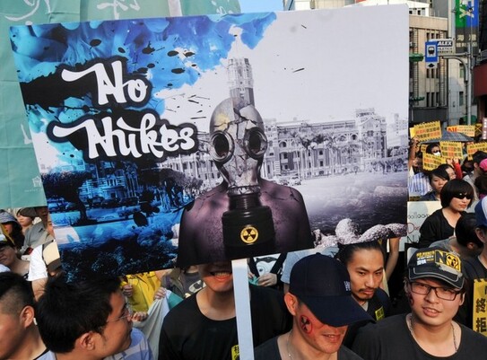 TAIPEI, Taiwan - Zece mii de taiwanezi au ieşit în stradă pe 9 martie pentru a protesta împotriva construirii unei noi centrale nucleare şi pentru a cere oprirea centralelor nucleare existente.
