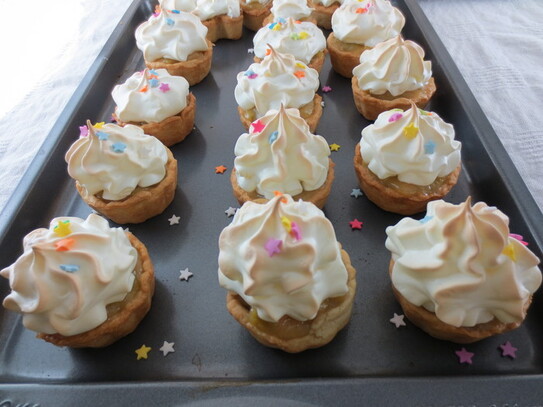 Puneţi tartele din nou în cuptorul preîncălzit la foc mic timp de 10 minute, sau până când bezeaua devine auriu-maronie.