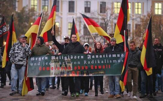 În piaţa din faţa Operei oraşului Dresda din estul Germaniei s-a adunat, treptat, luni noaptea bărbaţi şi femei, mulţi dintre ei fiind de vârstă medie. Bărbaţii care fluturau steaguri – unele dintre ele reprezentând regiunile germane, altele purtând simboluri naţionaliste – s-au strâns în faţa scenei ridicate în piaţă.