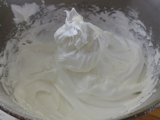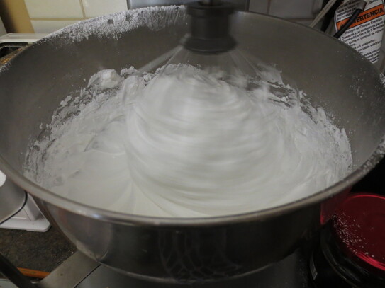 Pentru prepararea bezelelor, cele 6 albuşuri se bat bine folosind telul, mixerul sau robotul de bucătărie, până când spuma se întăreşte. Se adaugă pe rând 300 g de zahăr pudră şi praful de sare, bătându-se în continuare, până când spuma devine sticloasă şi tare.
