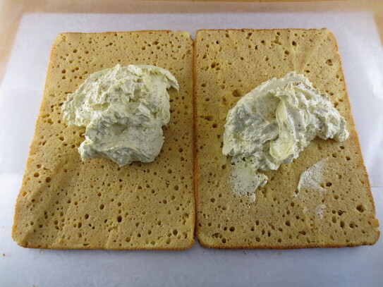 Se taie blaturile în două straturi pe lungime. Se aşează părţile de jos ale blaturilor, lipite unul de celălalt pe latura mare, apoi se însiropează cu sirop de zahăr ars. Se întinde uniform jumătate din crema de fistic cu lămâie. Se însiropează părţile rămase de blat şi se aşează peste cremă.