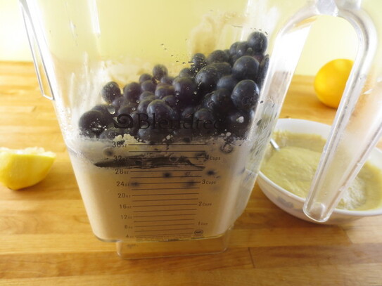 În cele două treimi rămase, se adaugă cele două căni de afine şi se continuă mărunţirea, până când compoziţia va deveni spumoasă.