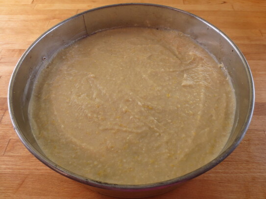 O treime din pasta obţinută se pune deoparte într-un castron mai mic şi se amestecă cu coaja de lămâie şi portocală.